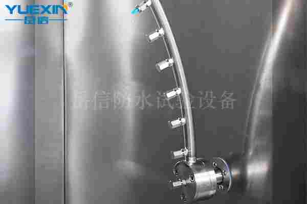 岳信防水试验仪器IPX1-4滴淋雨试验箱用于测试产品的IPX1、IPX2、IPX3、IPX4防水等级,采用箱式结构,无场地限制,内箱水循环使用,7寸触摸屏,全新操作系统,更能远程操作,方便快捷。测试样品包含电子元件、户外灯具、手机外壳、汽车配件等。