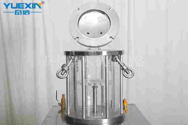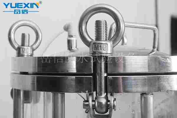 4. 全透明法兰盖,方便在测试在观察样品的进水情况,20mm厚钢化玻璃坚固耐用。