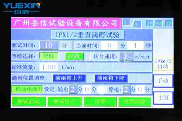 岳信IPX12滴水实验装置厂家用于测试产品的IPX1、IPX2防水等级,测试样品包含电子元件、户外灯具、手机外壳、汽车配件等,采用挂墙式结构,适用对比较大的样品进行测试,可以固定在墙壁上,采用7寸触摸屏,新增全新操作系统,更能远程操作,方便快捷。